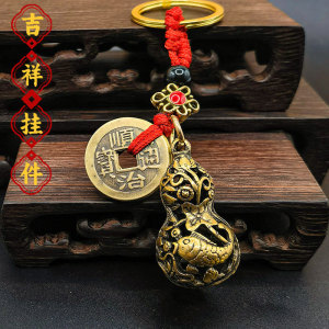 古い中空の魚座のひょうたん + 細かく編まれた赤いロープの五帝のお金