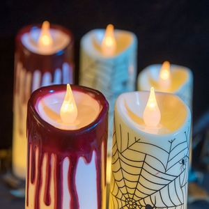 ハロウィン装飾 LED 電子キャンドルライト模擬血液滴クモパターン雰囲気アレンジメント小道具