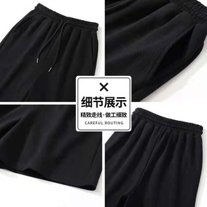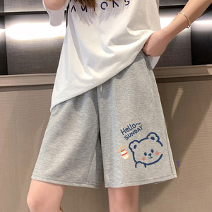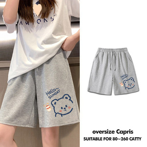 夏季阔腿短裤女运动宽松薄款高腰直筒休闲中裤胖棉大码五分裤