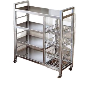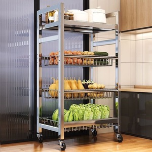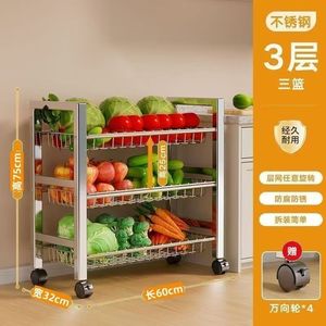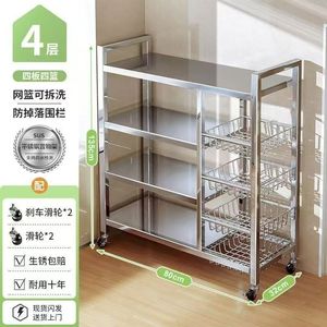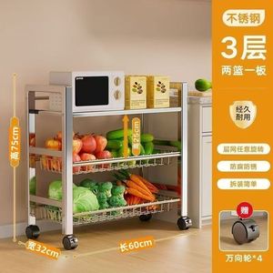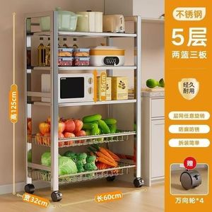 加粗不锈钢厨房菜篮子置物架落地多层微波炉收纳架锅具多功能架子
