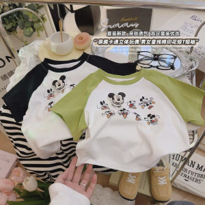 子供の 2025 夏の純粋な綿ラグラン半袖立体人形 T シャツ男性と女性の赤ちゃん韓国語版漫画ミッキー多用途