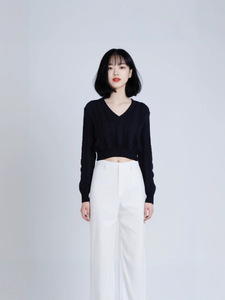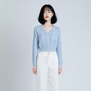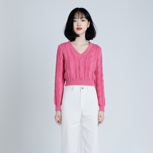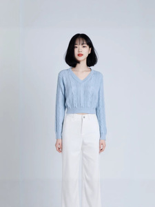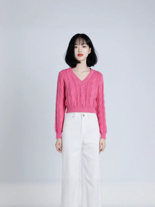 秋冬Vネックツイストニットセーター、スリムフィットプルオーバー、レディース長袖フレンチスタイル、都会的スタイル