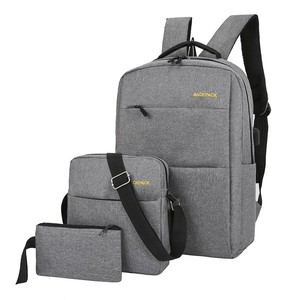 跨境新款三件套双肩包男女学生书包户外旅行背包男士双肩包简约