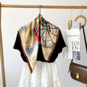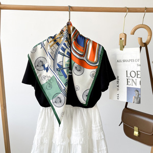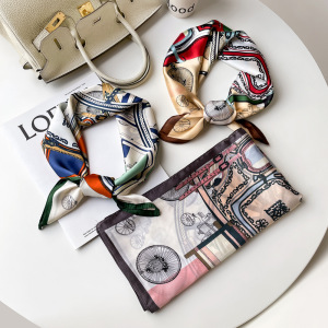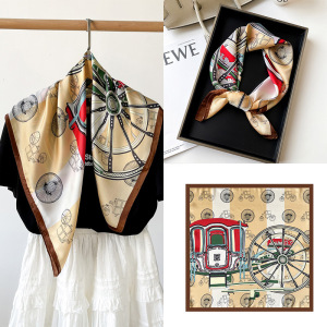 轻奢丝巾高级感时尚马车印花方巾大牌丝巾女士柔软护颈小围巾领巾