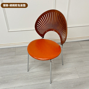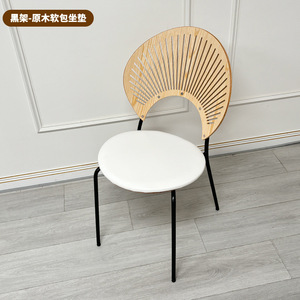 北欧無垢材ダイニングチェアホームインターネットセレブシェルチェアライト高級中古椅子背もたれレトロB&Bレストランソフトパッケージチェア