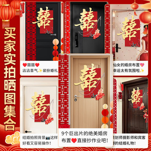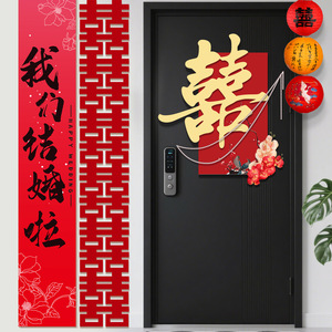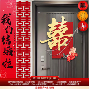 結婚式の部屋の装飾用品結婚式の部屋のドアの装飾フルセット男性と女性の結婚式の新しい家の寝室のドアステッカーハッピー kt ボード