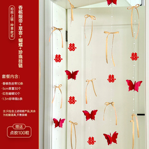 バーガンディサテンリボン[鄭西]蝶+パール吊りチェーン