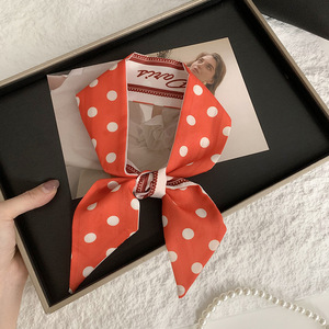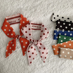 长条丝巾女系脖装饰领巾春季百搭小波点丝带头巾发带绑发绑包飘带