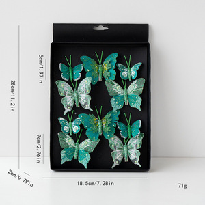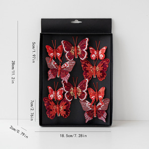 跨境新品圣诞节装饰布艺羽毛仿真蝴蝶挂件5-7cm彩色蝴蝶组合套装