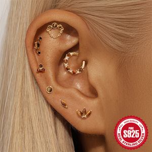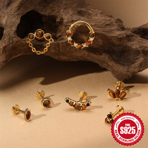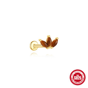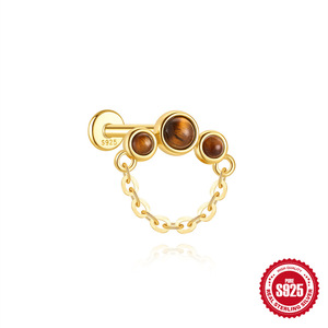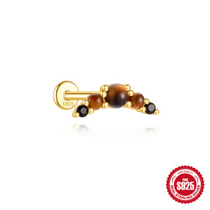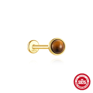 S925 スターリングシルバー天然タイガーアイストーンハイエンドフラットヘッドスレッドピアス耳骨釘ヨーロッパとアメリカの売れ筋フレンチスタイルイヤリング