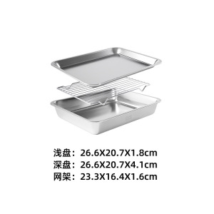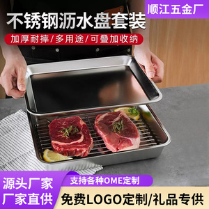不锈钢方盘三件套沥水盘长方形带滤网加深托盘盘日式餐具收纳托盘