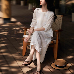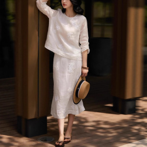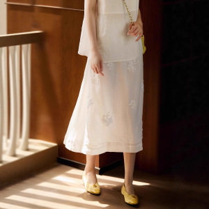 YUNLILAI | ヘビーデューティーブライトビーズ刺繍クリアラウンドネックトップ/スカートスーツ女性用