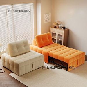 奶油风泡芙沙发床坐卧两用多功能小户型布艺客厅折叠伸缩单人沙发