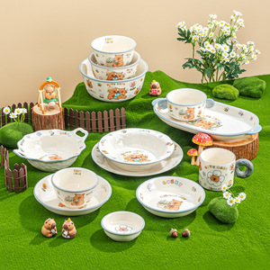 家庭用セラミックアンダーグレーズカラー漫画食器と食器セットかわいいボウルライスボウルサラダボウルクリエイティブスープボウルフィッシュプレート