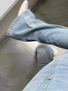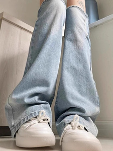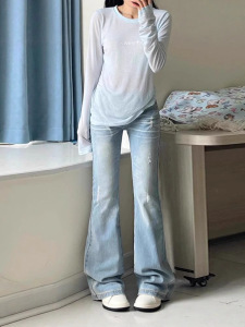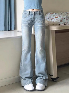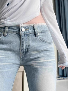 ホットガールライトカラーデザインマイクロフレアジーンズレディースレースステッチ春の新作スリムフィット馬蹄パンツ