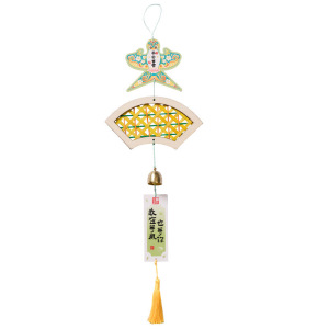 古代風竹風鈴 扇型紙凧風【竹編み風】