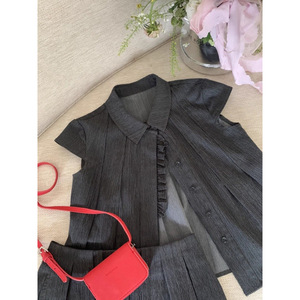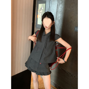 加州盛夏之夜新款俏皮复古花边小衫上衣高腰半身裙裤女两件套套装