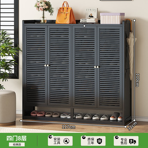 ルーバードア - 4 ドア、8 層、黒、ブーツ位置付き [深さ 32CM、大きいサイズの靴も収納可能]