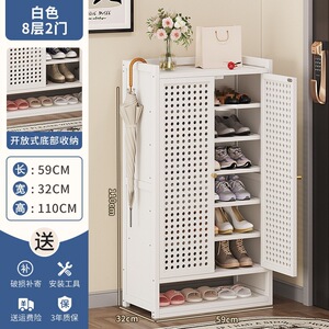 長虹門 - 2ドア、8階建て、乳白色 [深さ32CM、大きいサイズの靴も収納可能]