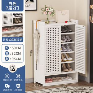 プラスチックラタンドア-両開きドア7層オフホワイト[深さ32CM、大きいサイズの靴も収納可能]
