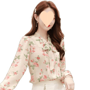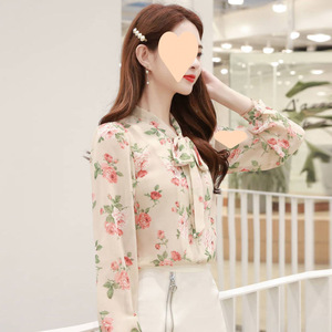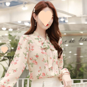 印花蝴蝶结百搭洋气小清新小香风气质名媛夏季女装女碎花衬衫女