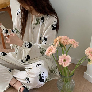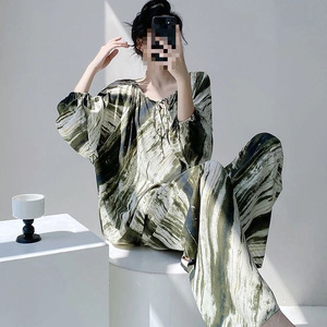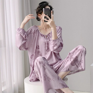 綿シルクパジャマセット女性のホーム服春と夏のパジャマ女性の夏フレンチレトロラウンドネック屋外で着用可能