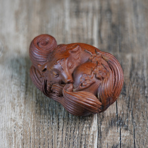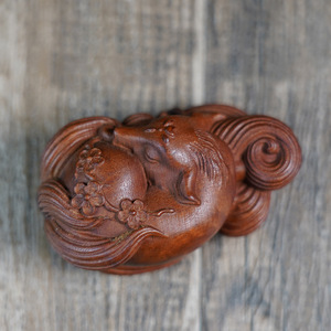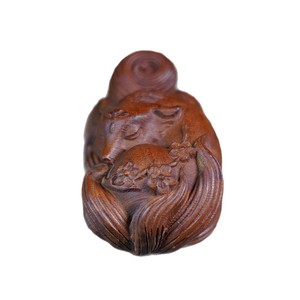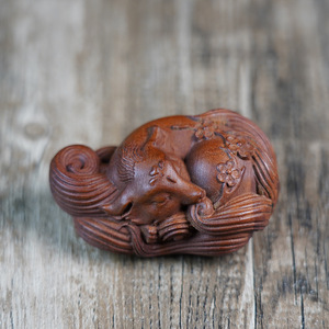 天然雷撃棗木九尾狐手彫り一体型飾り物、手工芸木彫道教用品
