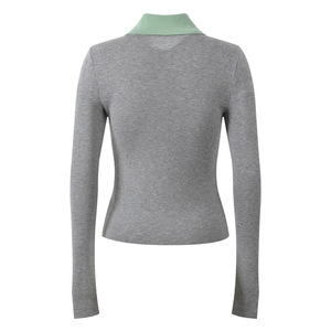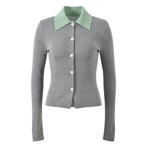 2025年初秋の新スタイルコントラストカラーポロカラーファッショナブルで多用途なスリムフィットライトグレーショートニットカーディガン