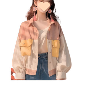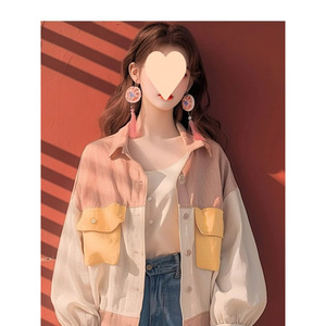 早秋新款独特好看韩系慵懒风宽松减龄小香风撞色拼接灯笼袖外套