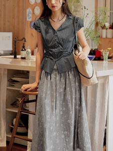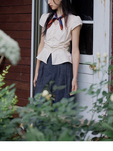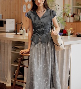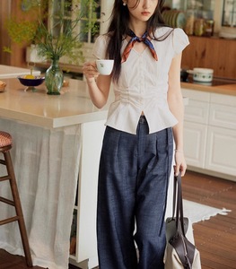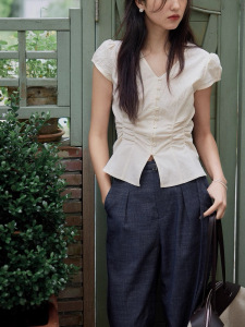 solighter フレンチプリーツ V ネックウエストシャツ女性の夏の気質トップ