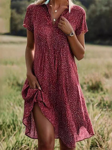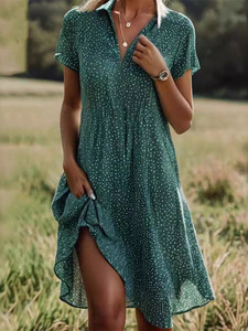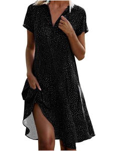 ヨーロッパとアメリカのクロスボーダー 2025 新しい夏のロングスカートカジュアルルーズ V ネック半袖水玉プリントシャツドレス女性のための