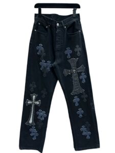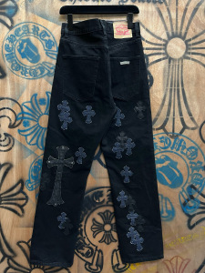 跨境美式顶级版CH克罗remake十字架拼皮梵文直筒工装牛仔裤男女款