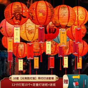 正月提灯10点セット【ライト付き、ランタン謎カード+赤い糸+タッセル+電子ライト】