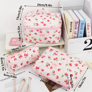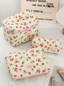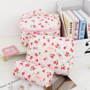 クロスボーダー新しいかわいいイチゴハンドル化粧品バッグ大容量収納袋シンプルで多用途なトイレタリーバッグキルティングバッグ