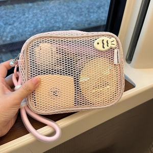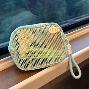 クロスボーダー豆腐メッシュ化粧品バッグ、高価値の対照的な色の中空スクエアバッグ、夏の新鮮でシンプルなポータブル収納バッグ