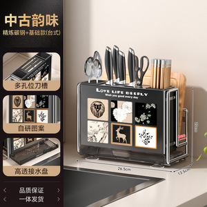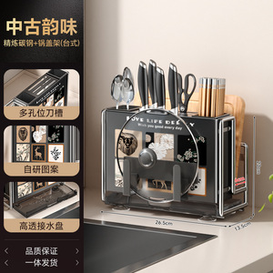 中世スタイル 2025 新しい磁気ナイフホルダー収納ラックまな板一体型キッチン多機能ナイフまな板収納ラック