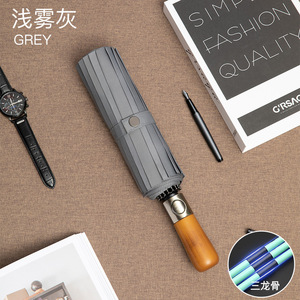 120本骨 高級無垢材/自動巻き 【10×6×2二段6本骨】晴雨兼用 ライトフォググレー