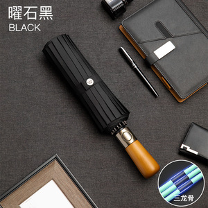 120本骨 高級無垢材/自動巻き 【10×6×2二段六本骨】晴雨兼用 黒曜石ブラック