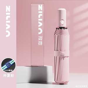 24本骨自動日よけ大型傘女性用夏折りたたみ晴雨兼用日焼け止めUV日傘ロゴプリント付き