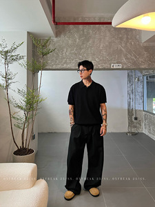 OXFREAK「老钱风 天丝亚麻」海鸥领褶皱针织polo衫男短袖翻领t恤