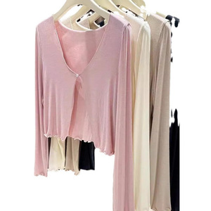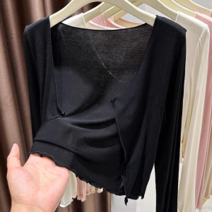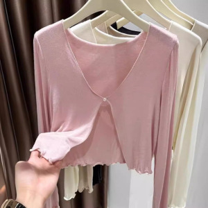 [モーダル] 薄手日焼け止めカーディガン レディース 夏 サスペンダースカート ショール付き ショートニット アイスシルク
