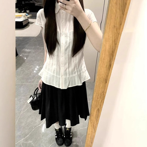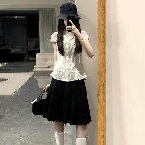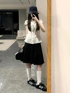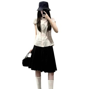韓国シックな着こなし、ガーリーなカレッジスタイルの半袖シャツスーツ、女性用サマードレスのデザイン一式