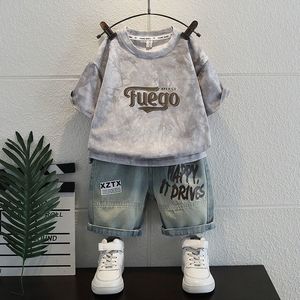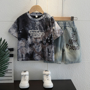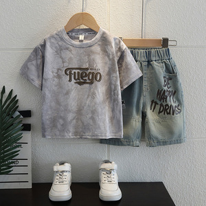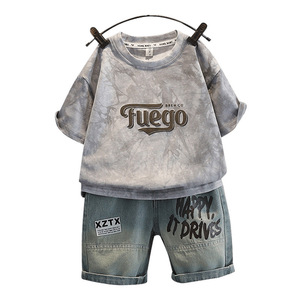 男の子サマースーツ 2024 新しいスタイル中大型男の子半袖 Tシャツ子供の夏のファッショナブルな 2 点セット