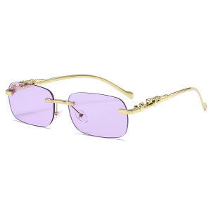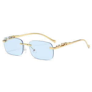 跨境欧美网红小豹子金属无框太阳镜男潮流时尚防晒嘻哈墨镜女眼镜