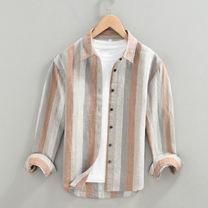 和風ストライプピュアリネン長袖シャツメンズルーズカジュアル薄型通気性リネンシャツ卸売