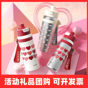 GOOM保温杯2025新款情侣高颜值大容量吸管水杯子提绳生日毕业礼物