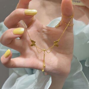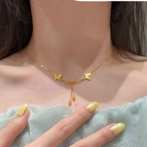 ライトラグジュアリーニッチデザインハイエンド925スターリングシルバーダブルバタフライタッセルネックレス女性の絶妙な気質ファッショナブルな鎖骨チェーン