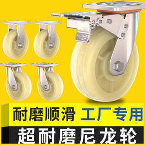 重型万向带刹车轮子尼龙轮6寸8寸平板手推车工业轮承重万向轮脚轮