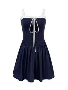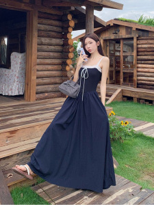 ドレスデザインニッチレースステッチストラップサスペンダースカート女性の夏のウエスト痩身ロングクロスボーダー卸売スクエアネック