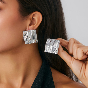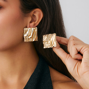 ヨーロッパとアメリカのクロスボーダーデザインメタルプリーツレースラブイヤリングファッションイン幾何学的な不規則な花びらイヤリング